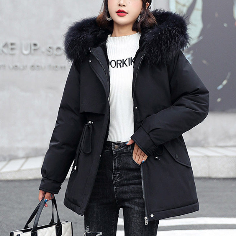 1*Luźna zimowa kurtka z kapturem dla kobiet, wykonana z grubego polaru syntetycznego
